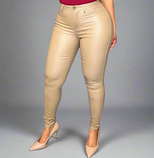 KHAKI MADE FOR ME FAUX LEATHER PANTS