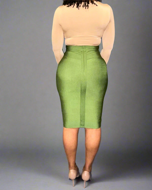OLIVE DOUBLE TAKE BODYCON MIDI SKIRT